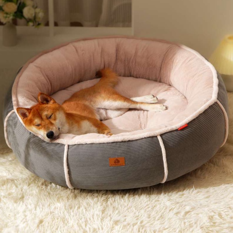 大型犬向けふわもこラウンド犬ベッド 包み込む安心感