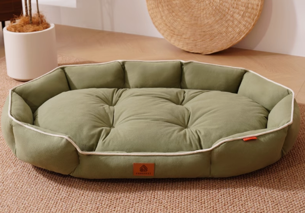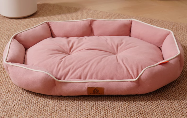 柔らかな素材の犬ベッドは、八角形のユニークなデザインで愛犬の体をしっかり包み込みます。