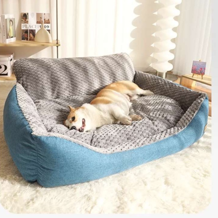 ふわふわのクッションと高い側面が、ワンちゃんを優しく包み込み、安心感を与えます。