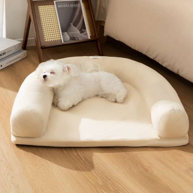 両サイドが高くなった設計で、ペットを優しく包み込むような安心感のある形状です。