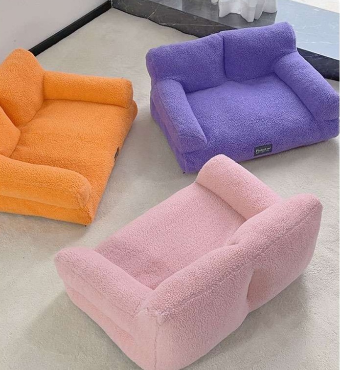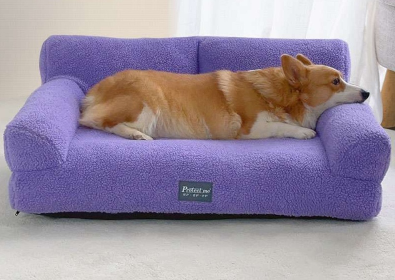 愛犬のためのゆったりソファ型犬ベッド。 肘掛け付きの贅沢なクッションで、横向きに広々とした空間を確保。 羊毛のような柔らかい素材が温もりと心地よさを提供します。 洗濯可能で清潔に保てる実用的な一品。 ソファデザインでお部屋のインテリアとしても映えます。