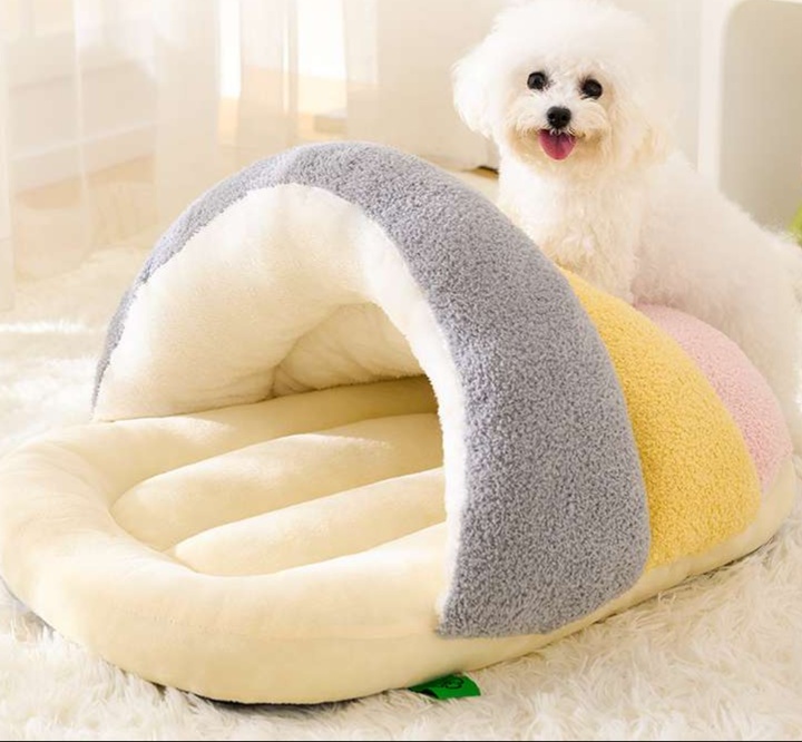 アーチ型の屋根付きデザインで、愛犬に安心感を与える隠れ家のような空間を提供。