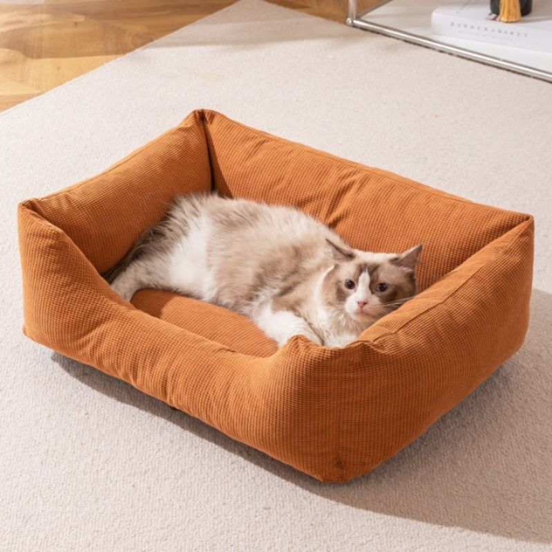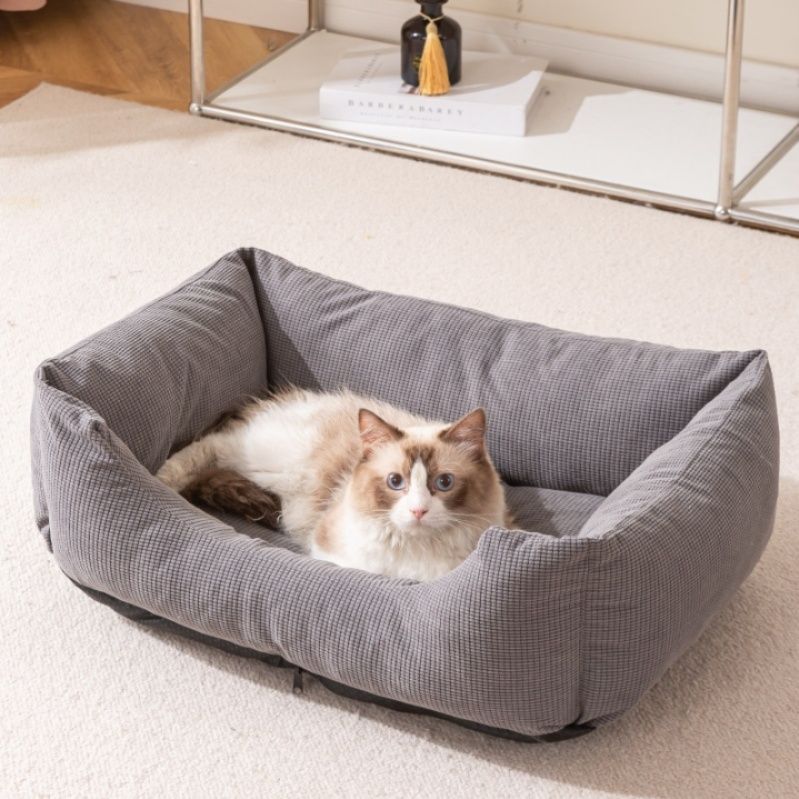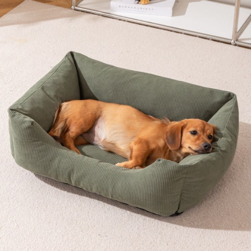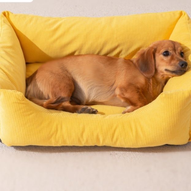四方を囲む厚みのある縁が愛犬に安心感を与え、ゆったりとくつろげる設計になっています。