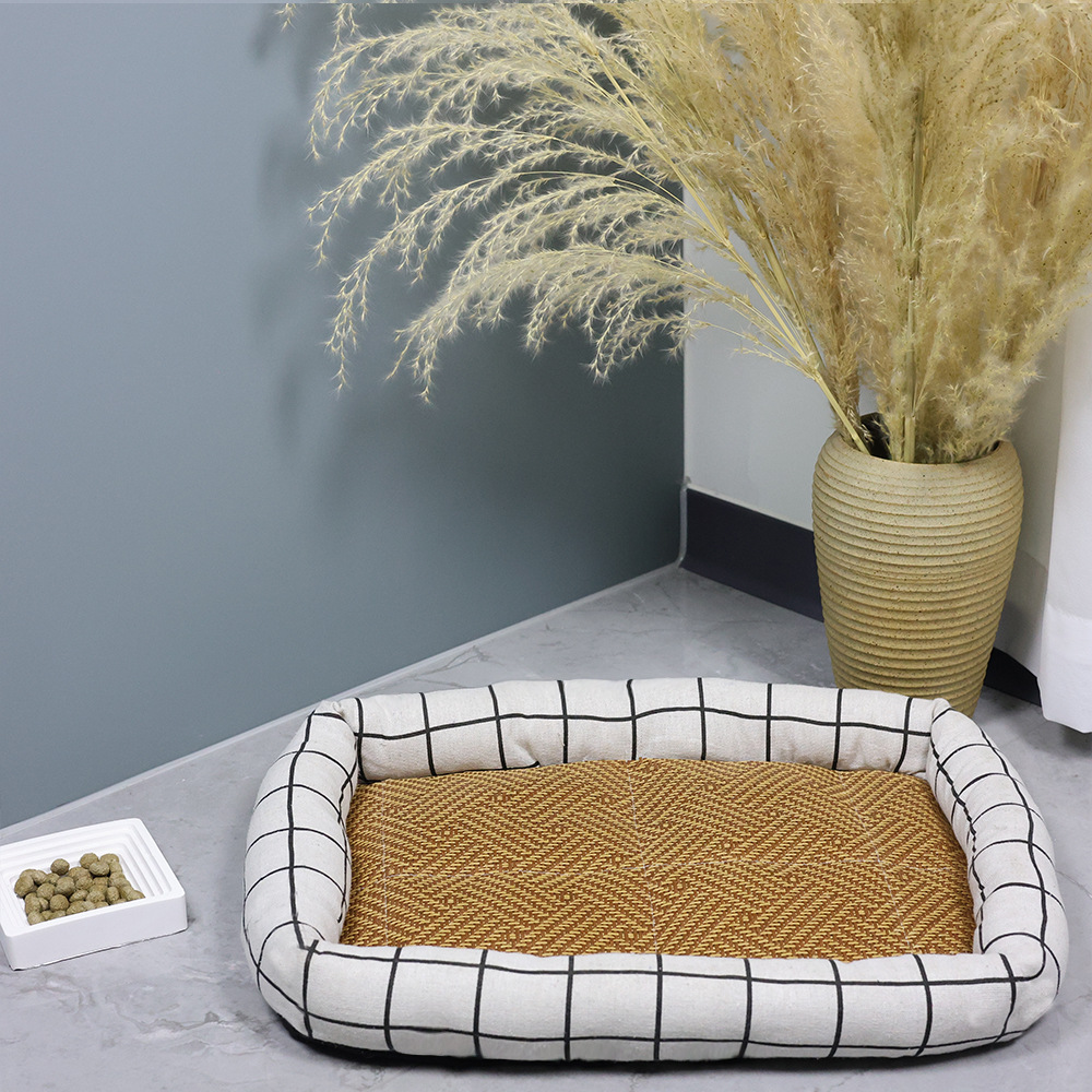縁にはふっくらとしたクッション性のある格子柄の枠を配し、中央部分は通気性に優れた籐編み風の素材を使用しています。